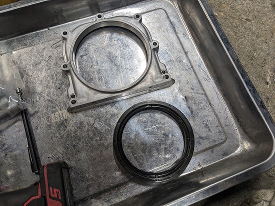 リヤクランクシールもまたやるの嫌なのでこの状態の時に交換しておきます。