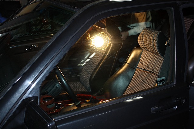 たまたまこの撮影後にサーキット仲間のK氏の所に手動式シート一式を取りに行くので運転席にバケット一脚だったので「これレーシーじゃないですか!」と何だか撮影されてましたが・・・・