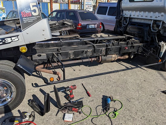 古川ユニックの積載のサイドバンパーステーが結構邪魔。