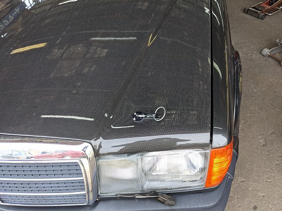 カーボンボンネットより純正が良いとの事で交換します。