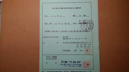 改造内容が明記されておりこの書類は常に携帯してないとダメと言う事です。