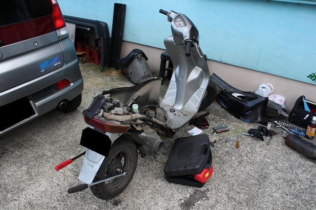 午後3時ころ帰宅して昨夜舎弟に頼まれた原チャの修理。