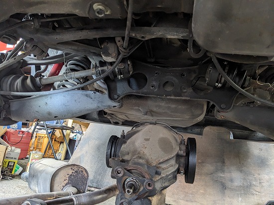 次はマフラー外してプロペラシャフトおろしてデフおろします。