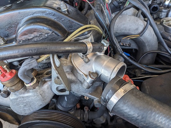 サーモスタッドケースが対策前のプラだったのでアルミのに交換します。