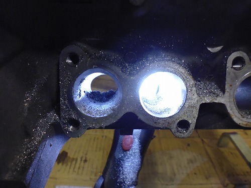 ただこのインマニポートと排気ポートはかなり小さいのでBさんの持ってるインマニとタコ足に合わせて削ります。