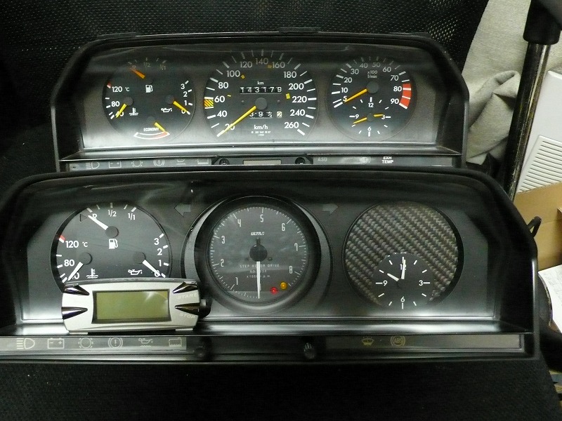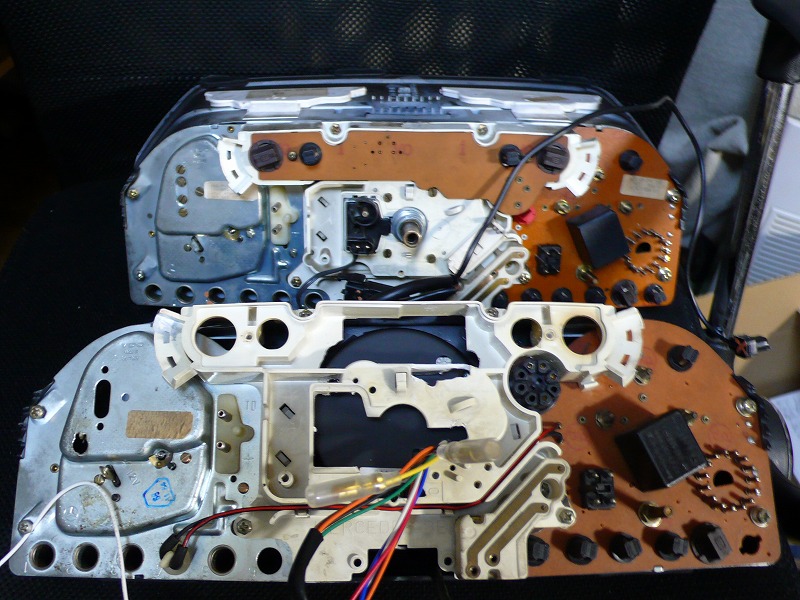 本来メーター裏の左セクションが無いとEGがかからないのですがすでにフルコンにて制御してますので別に無くても良いんですけど燃料計、水温計はそのまま使いたいので左側は純正を使います。