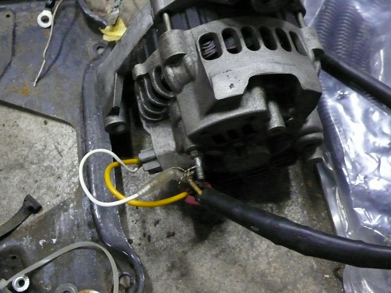 このオルタは前オーナー氏が国産大容量物(某オク品)に新品で交換してあったのですがカプラー根元の配線がむき出しになっており「ここだけ何もしなかったのかなぁ~」なんて思っていて本日暇だったのでオルタを外してみました。