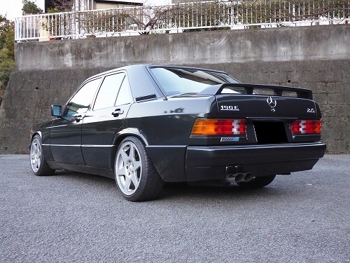 この190Eはナローボディですがエボ2ホイール履かせるためにいろいろ加工してあります。