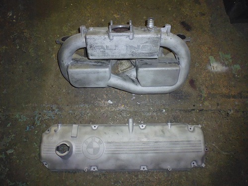 こちらは現在エンジンフルOH中のアルピナB7ターボ3のヘッドカバーとインマニ。
