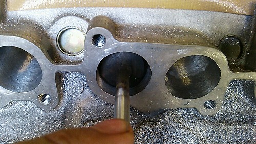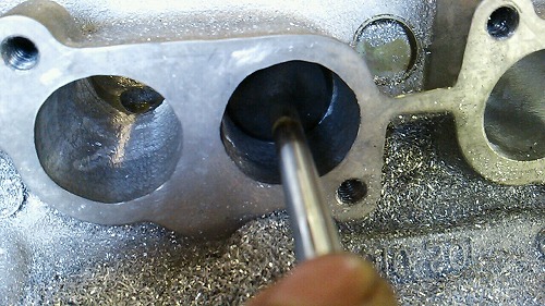 この穴がエボ2ノーマルなんですが軽く削ってありますが全然狭くこのバルブがすっぽり入るようにする訳です。
