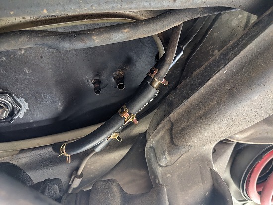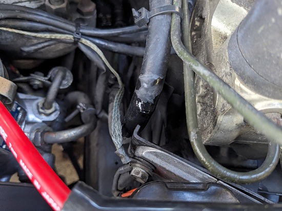 と思ったらエンジン側のフューエルホースに穴が開きました。(汗)