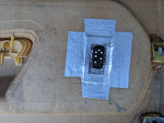 仕方ないので当分黒アルミテープで固定です。