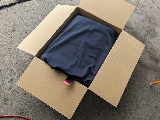 Bさんの知ってるボディカバーは下に紐があって最後それをキュっと縛るんですがこのカバーは下側が靴下のようになっててオーバーハングのところに大きくかぶるようになってます。