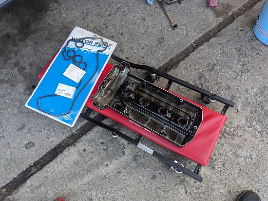 確認するとヘッドカバーからでしたのでパッキン交換します。