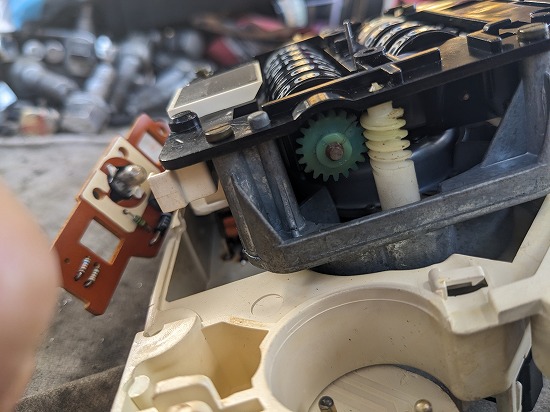 このグリーンのギアが割れてますね。