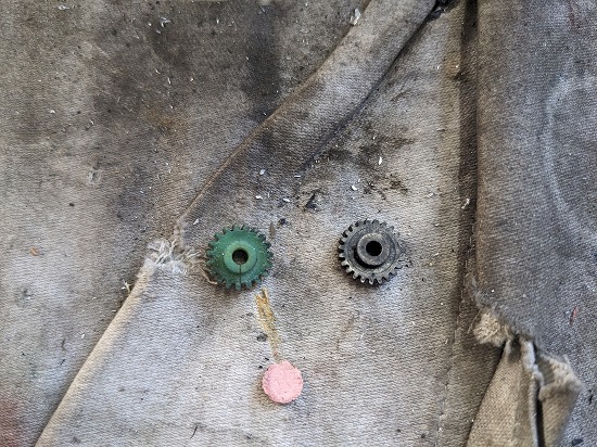 黒い方が部品取りから外したギアです。