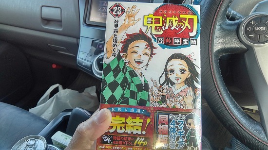 ミニBくんにはこの前発売になった鬼滅の刃最終巻をたまたま発売日にコンビニよったら何かオマケ付きのが売ってたんで買っておいた。