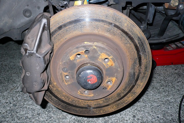 実はW124/500E乗りのO氏より以前使ってたノーマルブレンボブレーキ一式を借りていたのですが勿体ないので今回は使いませんでした。