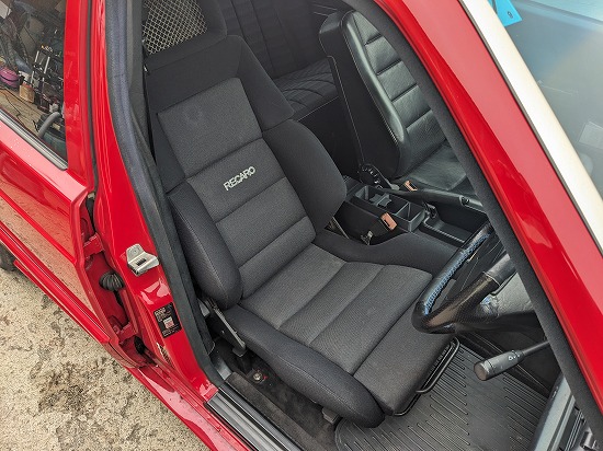 どーにも嫌なので副隊長にバモス借りて倉庫で見つけたレカロCTを持ってきて交換しました。