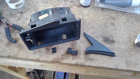 プラスチックリペアキットでプラ溶接してプラリペアで補強して余分なところを削ります。