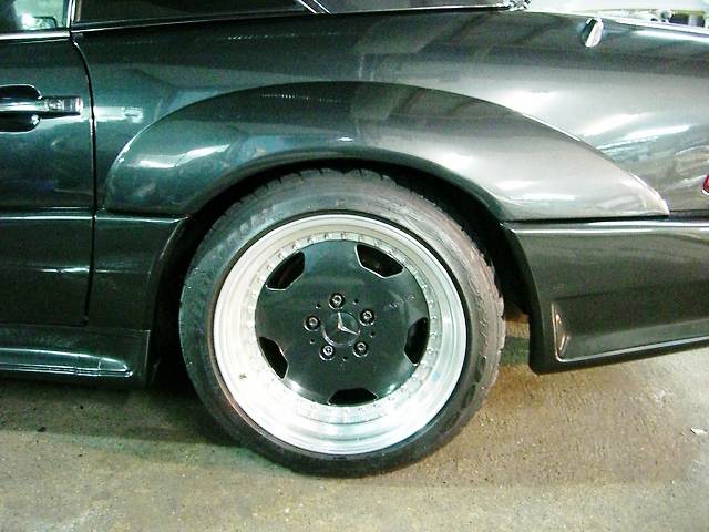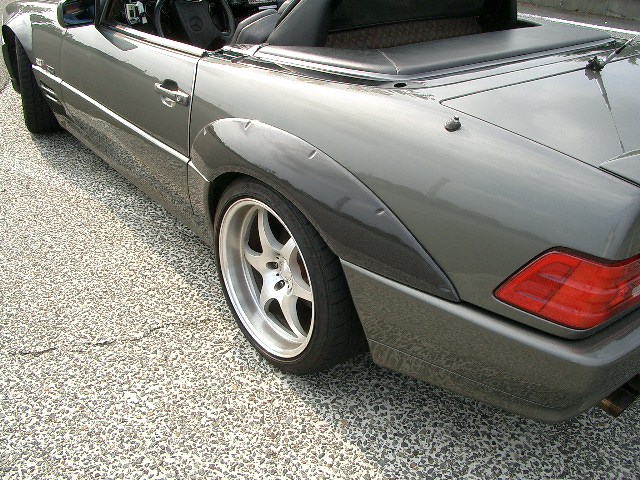元々R129のRフェンダーは出ているので純正の上から貼り付けても違和感無く取り付けられます。