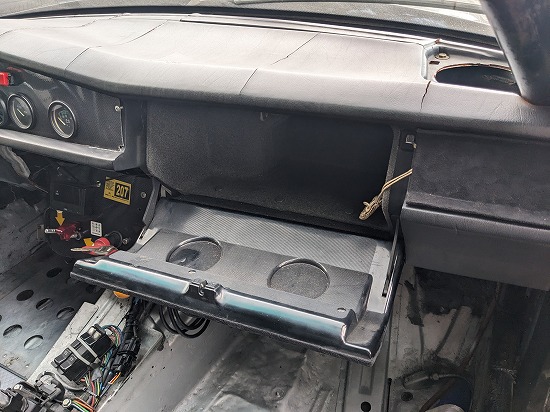 先週ダッシュ左右の吹き出し口をアルミで作りましたがやっぱグローブボックスもアルミでと思ったんですが部品取りから外してきて取り付けました。