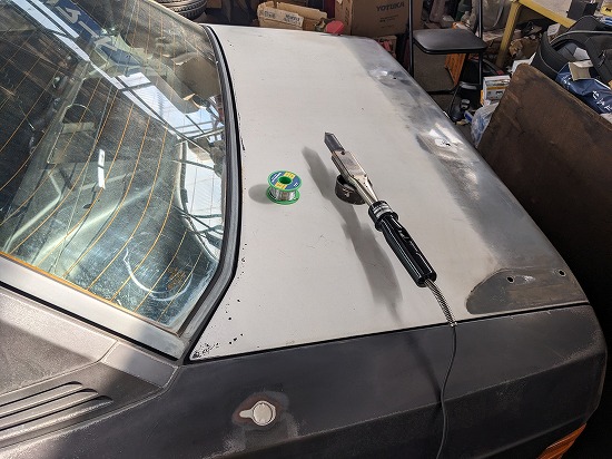まずはラジオアンテナ穴、16Vウィングのセンター穴を埋めます。
