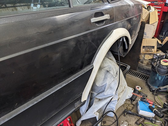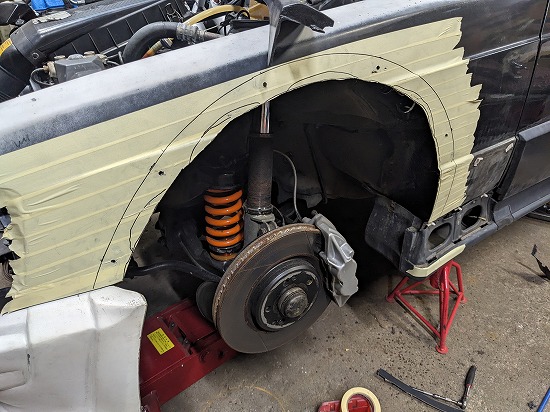 エアソーでフェンダーカットしてる時RWBの社長さんのモノマネしてる人を思い浮かべちゃって(笑)