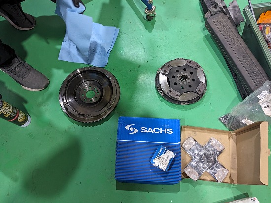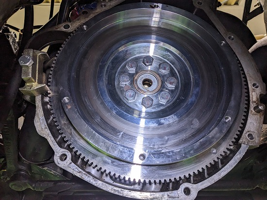 この車両のフライホイールはアルミ製の軽量の物に換えてありますね。