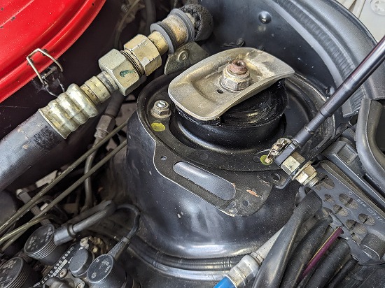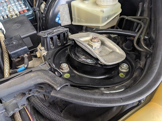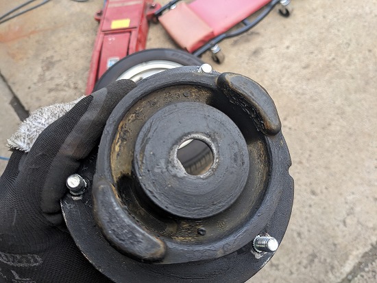 アッパーマウントは亀裂入ってますので交換します。