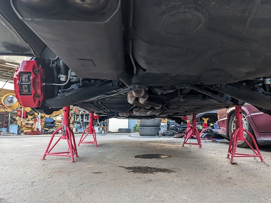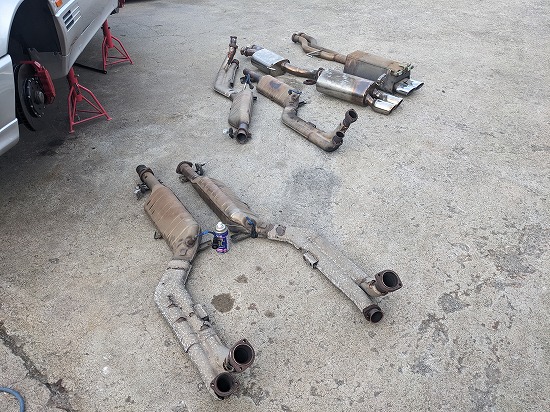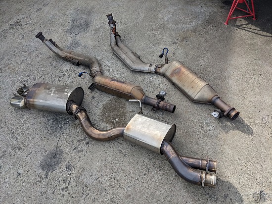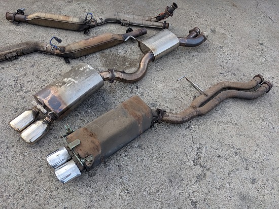 本来はマフラーを入れ替えで両方組む予定だったんですが外した元の触媒はいずれ今回入れた触媒もいつ壊れるかわからないので修理した方がよいかと思いますので部品取り車に戻さないで外したまま持って帰ってもらいましょう。