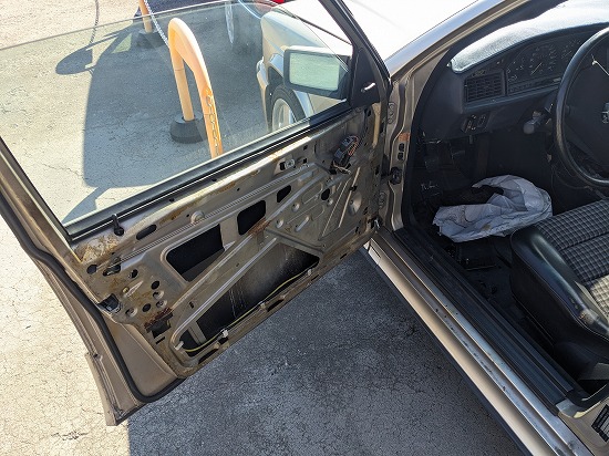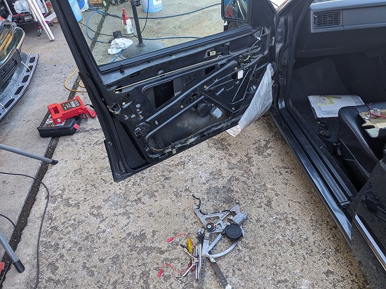 で助手席のウィンドウレギュレーターモーターが壊れていたので部品取りから外して交換します。