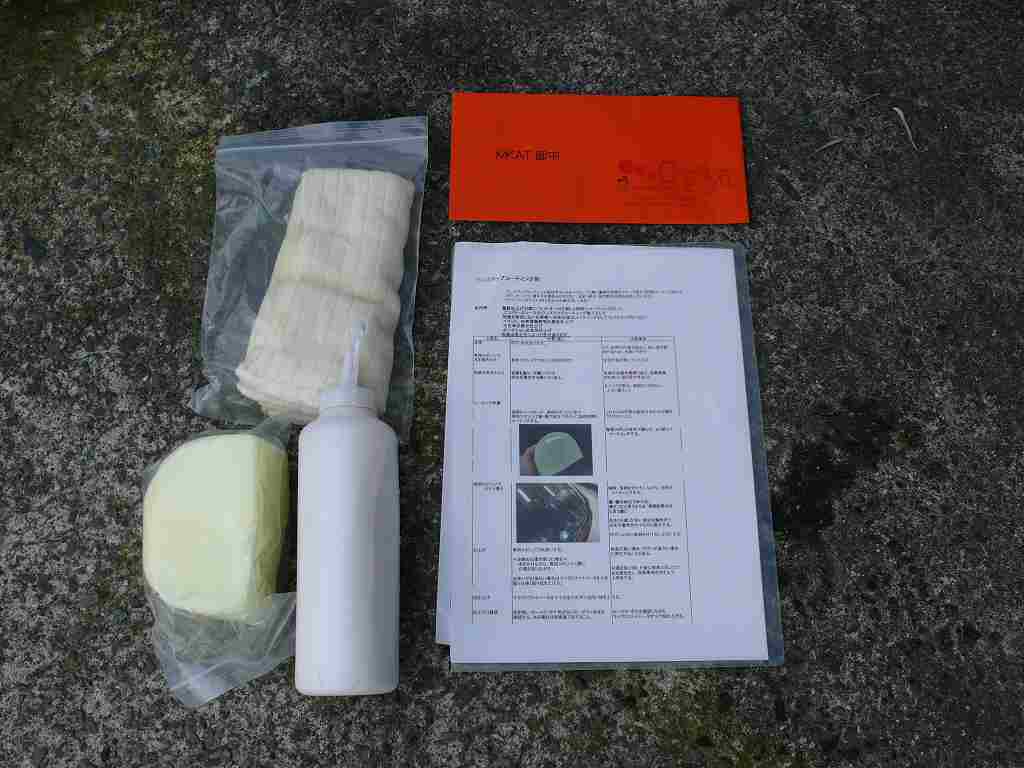 ワンステップコーティング剤、低反発スポンジ、マイクロファイバーウェス、取説、上のオレンジの封筒は請求書です(><)