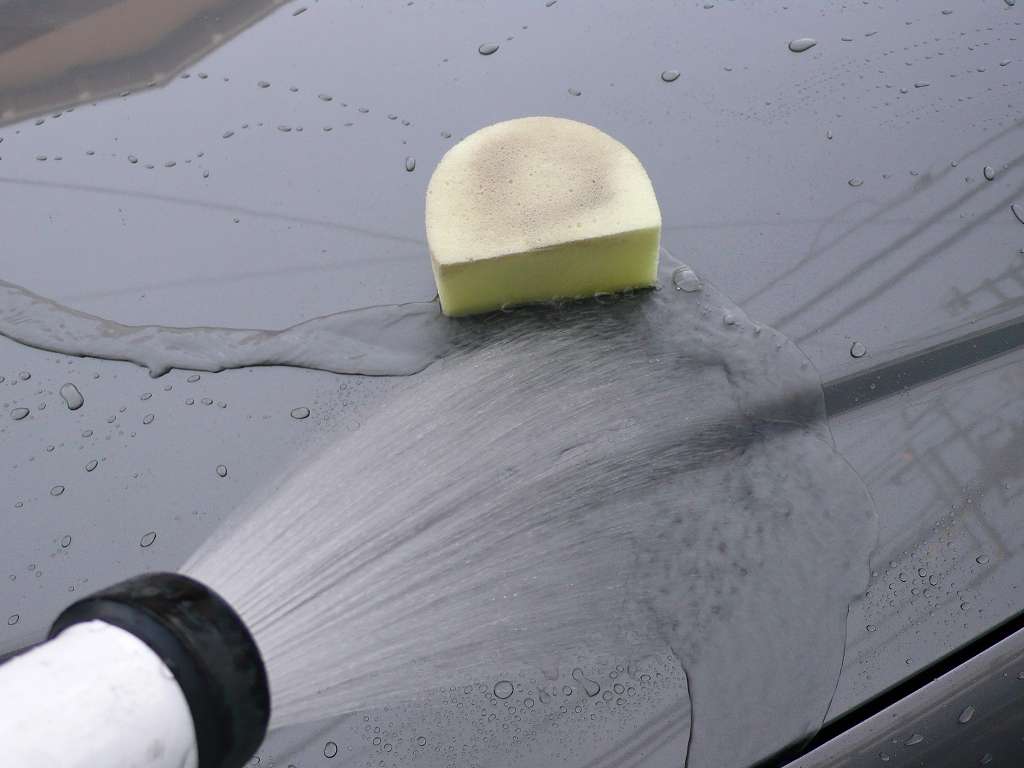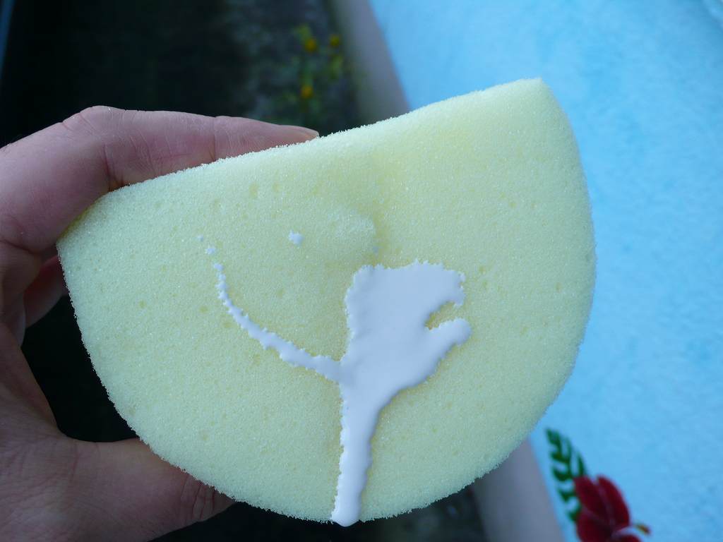 その後今度は低反発スポンジを使って洗い流します。