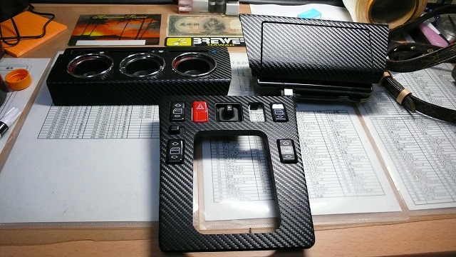 コンソールのウッドもダメでしたが予備を持っていたのでそちらを使いカーボン風味に仕上げてみました。