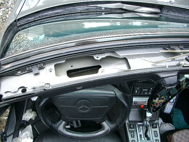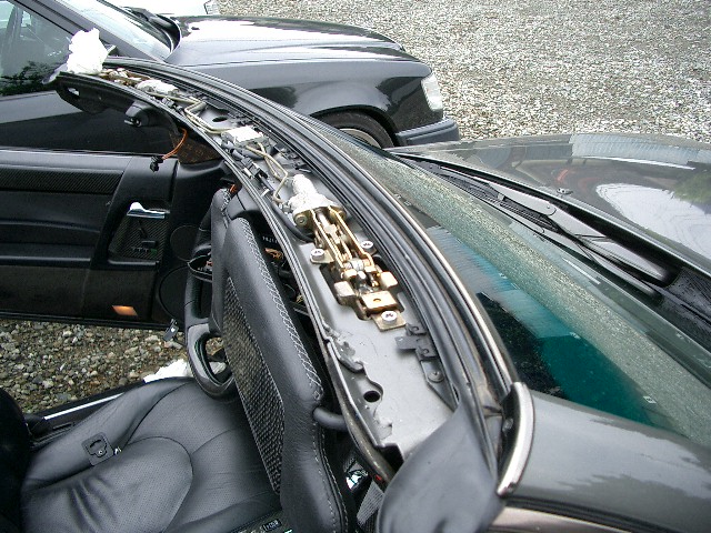 ちょうどFガラスの上あたりに幌が閉まる時にロックがかかるのですがその辺を手当たり次第にバラしていきます。