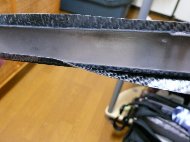 速乾性のボンドを塗ったのにカーボンが剥れる方が早く少し浮いて固まってしまったのです。 トホホ・・・・