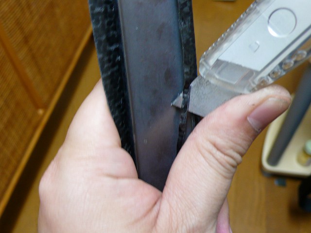 そこでBさんは近所のホームセンターに行き即速乾性のボンドを買ってきて折り返してある所にボンドを塗って押さえるように固定しました。