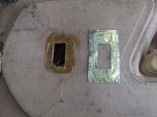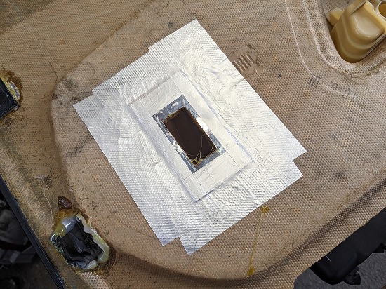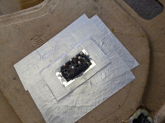 がボンドが完全に乾くまで不安なのでアルミテープで補強します。