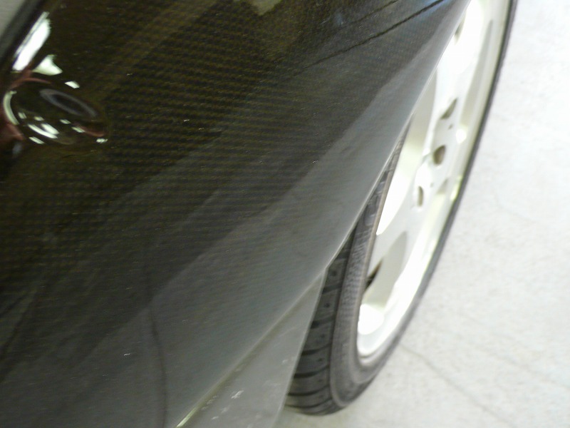 リヤフェンダーはウチのバーフェンですがクリアー塗装せず放置しておいたらカーボンが黄色くなってクリアゲルコートが白く汚くなってしまったんで磨いてもらい色付クリアーで拭いてもらいました。