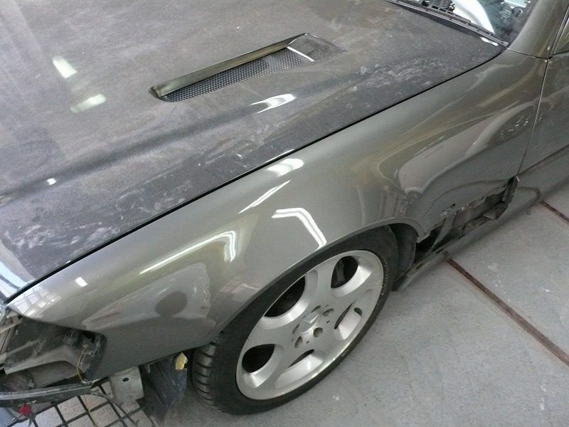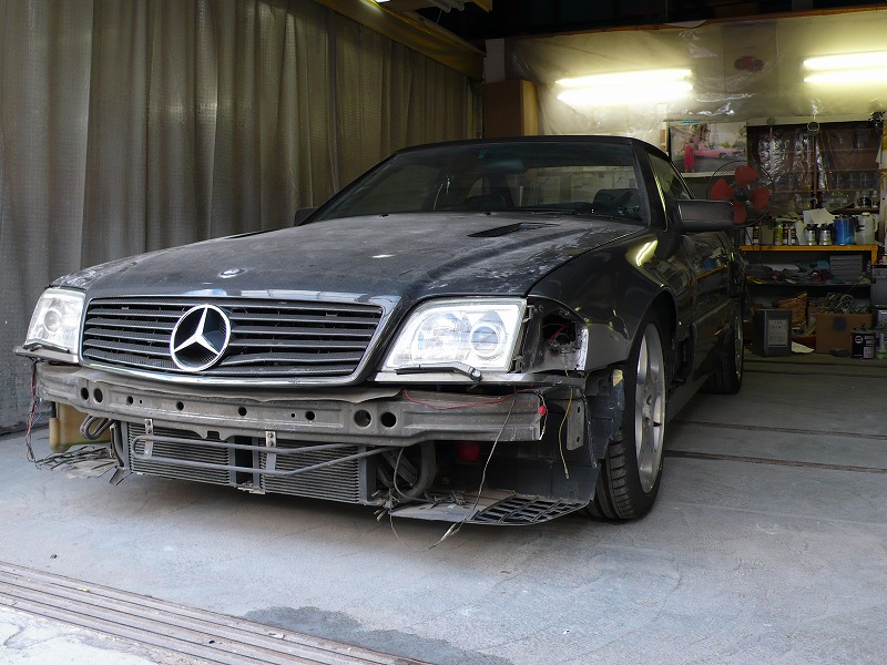 と言うのも最近サーキット仲間のNくんの車両が保険修理で入庫してましてその状況確認と修理の他に直すところがあったのでその確認と旧B号(SL)の状況と新しい製品が出来てきたのでそれの確認引き取りがあり行ってまいりました。