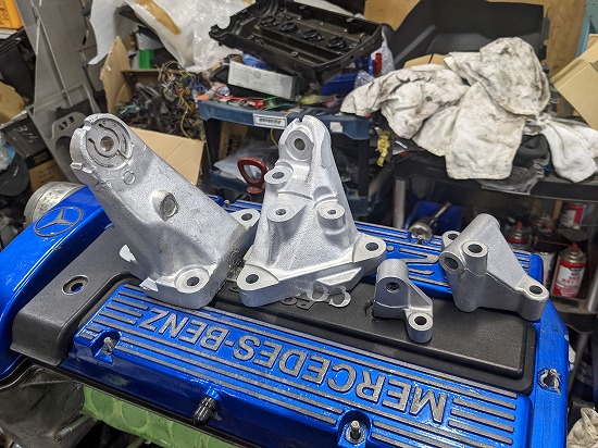 エンジンマウントステーやオルタステーなんかもウェットブラストで綺麗にしました。