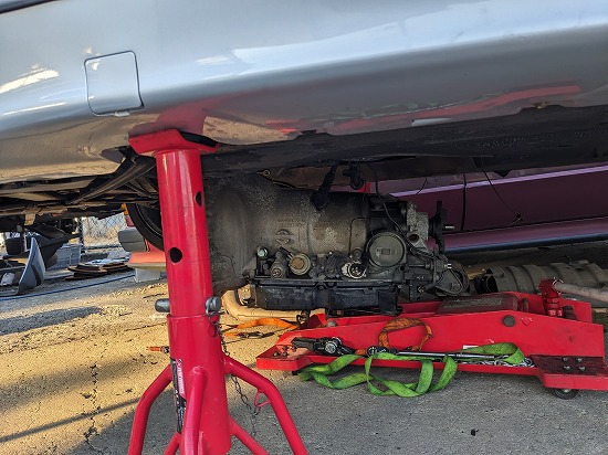 そこが邪魔でATの釜が外れなかったんで多分載せる時に厳しいんでそこのエキゾーストだけ外しておきます。
