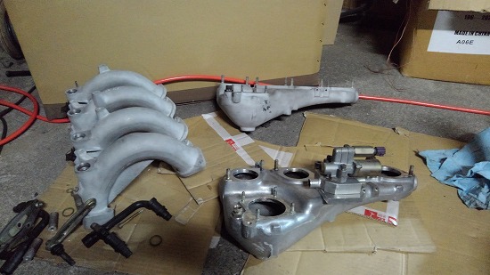 純正インマニ&サージタンクを3個用意してそれぞれにBさんの思い付くように作ってみた。
