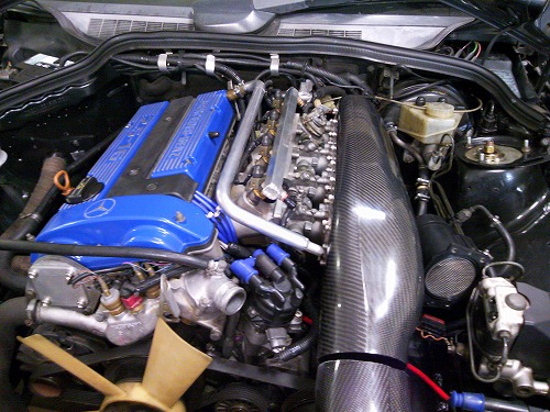 トヨタ101スロットル+ベンツ純正インマニ(加工)なのでかなり苦労しましたが何とかここまで出来ました。