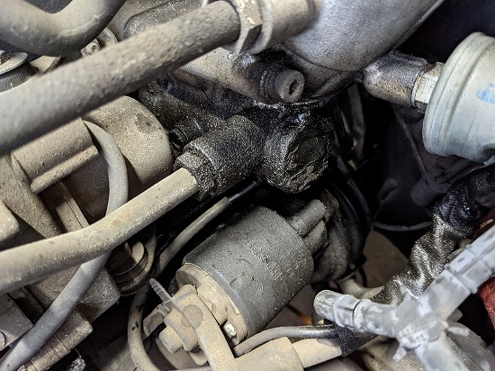 定番のオイルフィルターケースからのオイル漏れも発見。