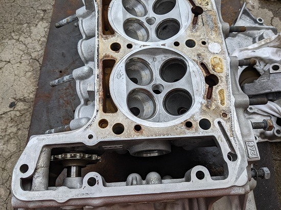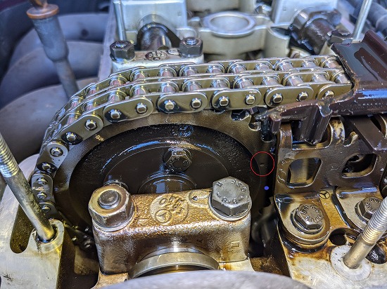 原因は多分割れたチェーンガイドが落ちてチェーンと絡んだか対策前のチェーンテンショナーが原因と思われます。