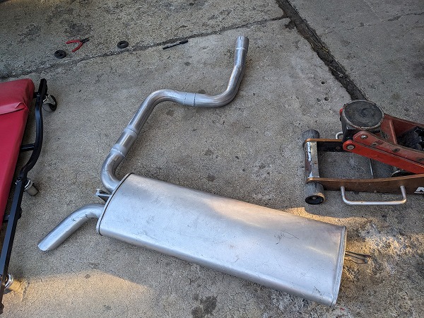 先週末に輪留めに引っかかって外れたマフラーのパイピングを加工しました。