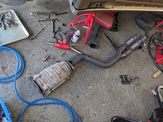がこのフロントマフラーの誰かが加工した箇所の角度が悪くて結構作り直します。