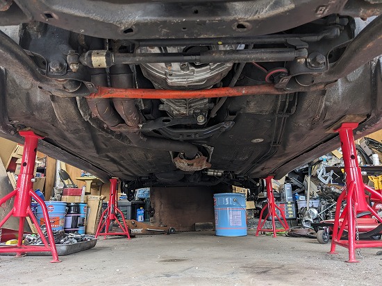 リフトがあれば大した作業じゃないんですが何せウマかけてやってるので潜って立っての繰り返しが地味に辛いです。